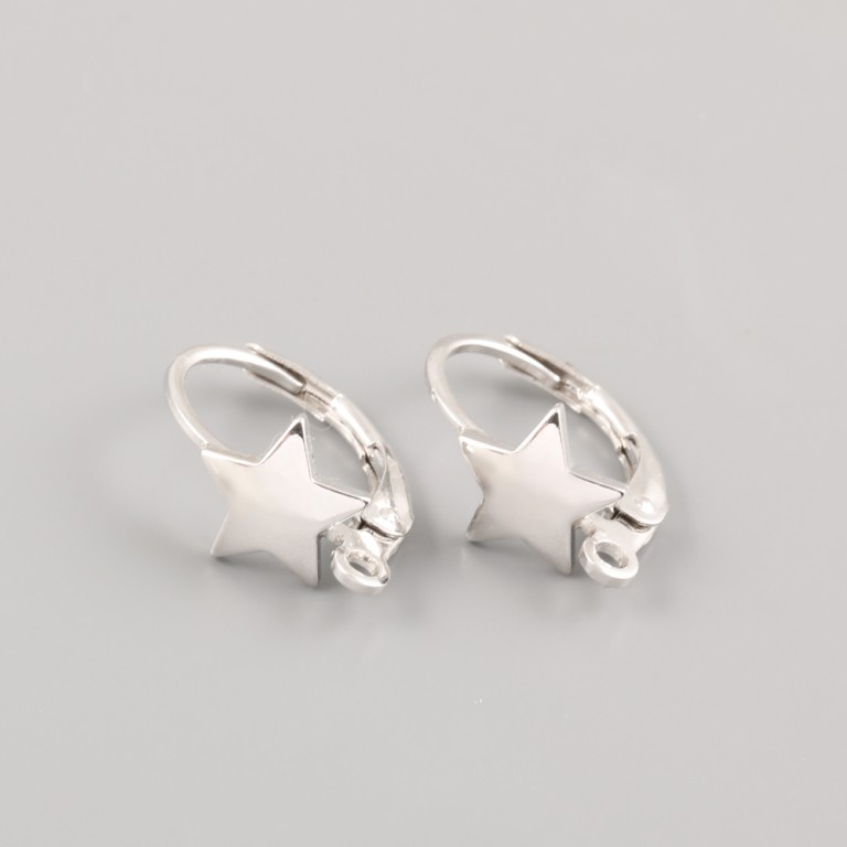 Náušnicové zapínání S HVĚZDIČKOU - rhodiumNÁUŠNICOVÝ KOMPONENT - ZAPÍNÁNÍ ZDOBENÉ HVĚZDIČKOU - na které můžete zavěsit naketlované korálky nebo pomocí spojovacího kroužku přívěsky. Délka náušnice 12mm, průměr hvězdičky 8mm.