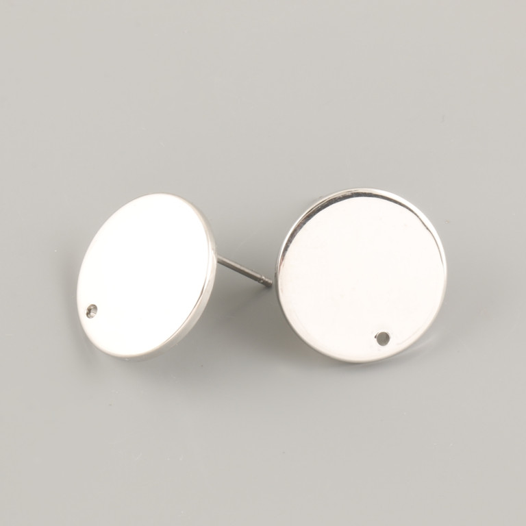 Puzety KULATÉ 15mm - rhodiumPUZETY NA NÁUŠNICE - KULATÉ 15mm - rhodiovaná. Puzety jsou lesklé a hladké a mají ve spodní části dírku pro zavěšení ozdoby. Cena za pár včetně rhodiované zarážky kovové.