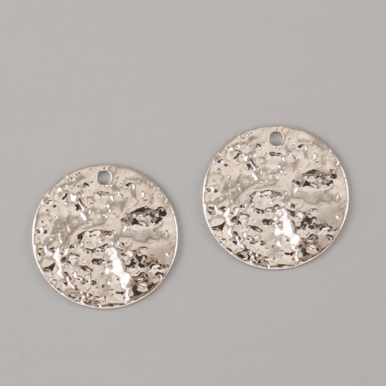 Přívěsek TEPANÁ PLACKA 24mm - paladiumBIŽUTERNÍ KOMPONENTY - kulatý přívěsek o průměru 23mm se zvlněným povrchem, jako tepaný. Přívěsek má u okraje dírku.