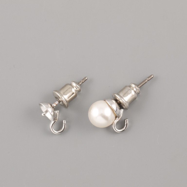 Puzety na perličky 6 až 10mm s očkem - rhodiovánoNÁUŠNICOVÁ ZÁKLADNA PRO PERLIČKY SWAROVSKI od velikosti 6mm. Cena za pár bez perliček, perlička Swarovski na fotografii jsou pouze ilustrativní. Průměr kotlíku 8mm