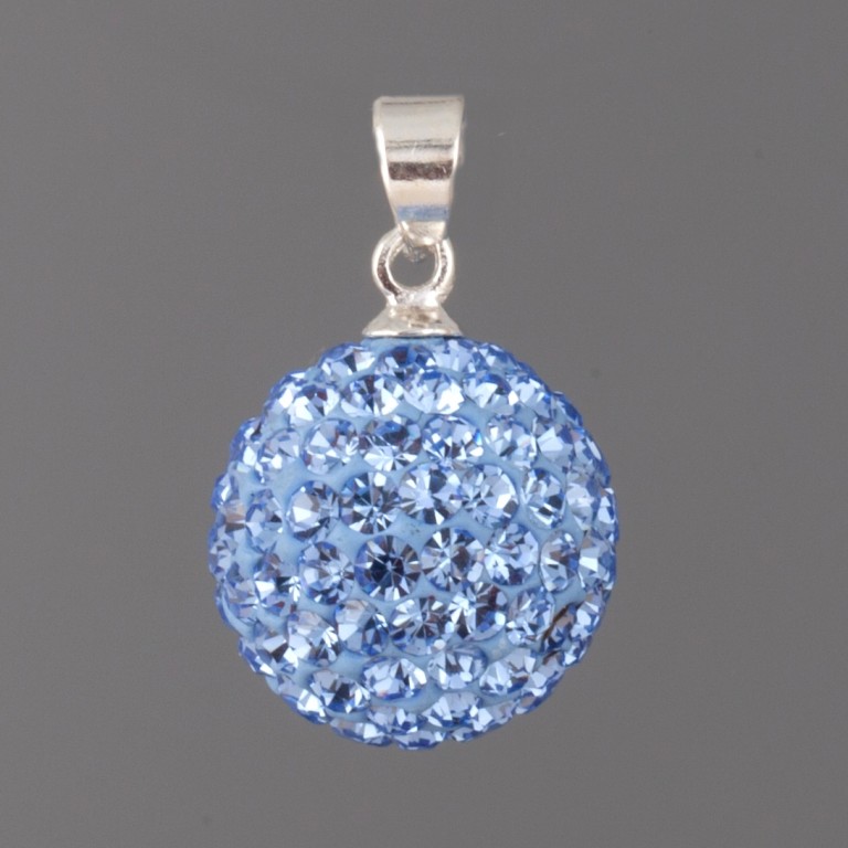 Kulička s kamínky - Ag925 - Light Sapphire 14mm bez šlupnySTŘÍBRNÉ KOMPONENTY - KULIČKY S KAMÍNKY - kulička posázená kamínky na stříbrném závěsu Ag925. Cena za kus. (stříbrné komponenty)
