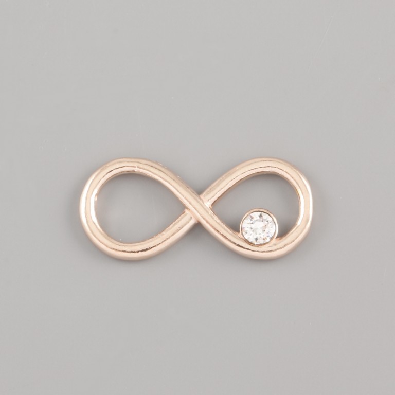 Přívěsek Ležatá osmička S KAMÍNKEM - Ag925 růžově zlacenéPŘÍVĚSEK LEŽATÁ OSMIČKA S KAMÍNKEM - pevný přívěsek, velikost na šířku 16mm. Cena za kus.