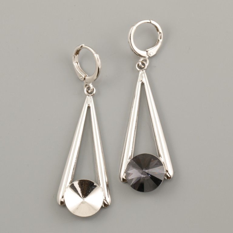 Moderní a odvážné náušnice, jejichž základ tvoří dva špičaté díly uspořádané do tvaru trojúhelníku. V jeho nejužší části je vsazena RIVOLI SWAROVSKI 12mm, která celý šperk rozzáří brilantním třpytem.