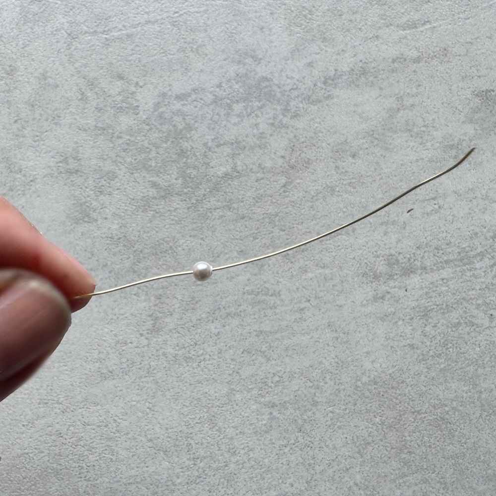 Perličku navlékněte na zbytek drátku, cca 6cm bude stačit, umístěte ji do středu drátku.