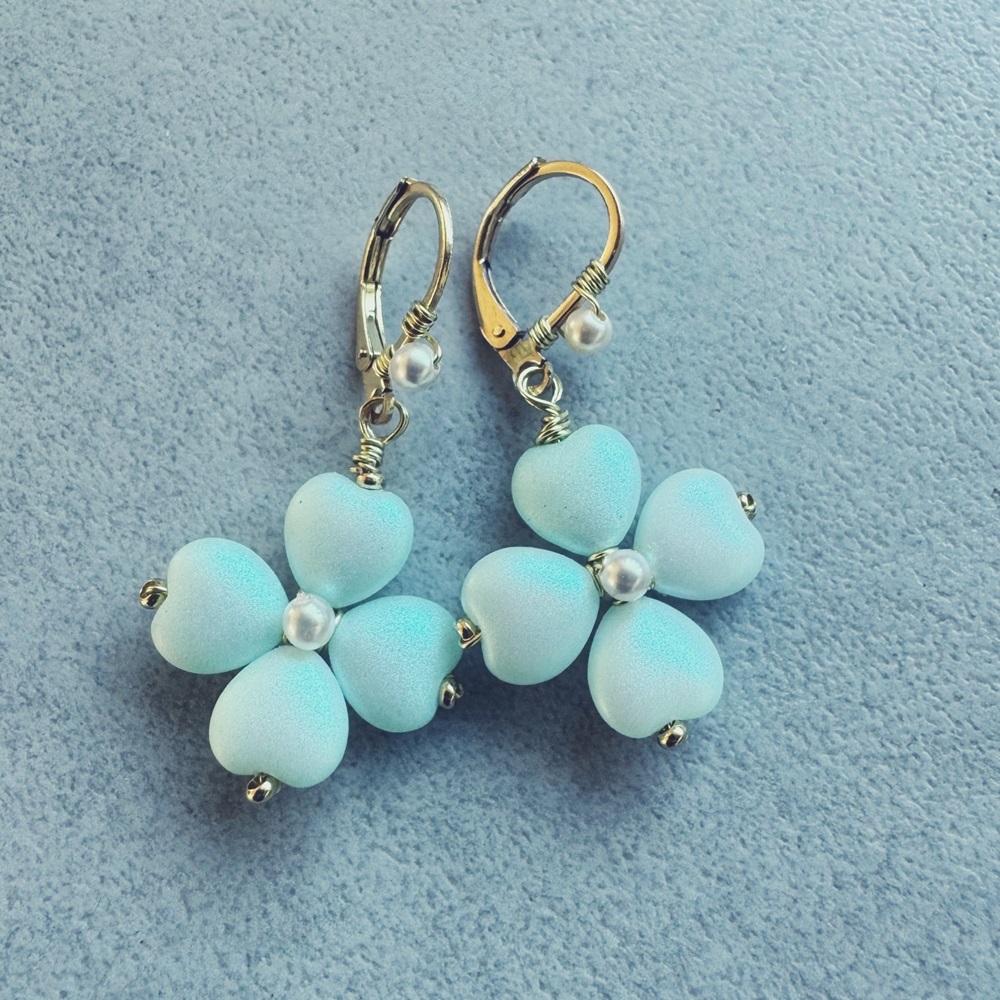 Hlavní materiál: korálky srdíčka, kovové korálky, perličky a náušnicové háčky